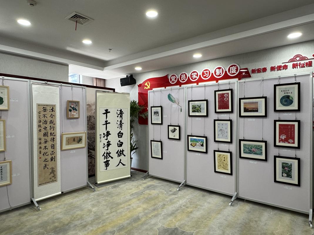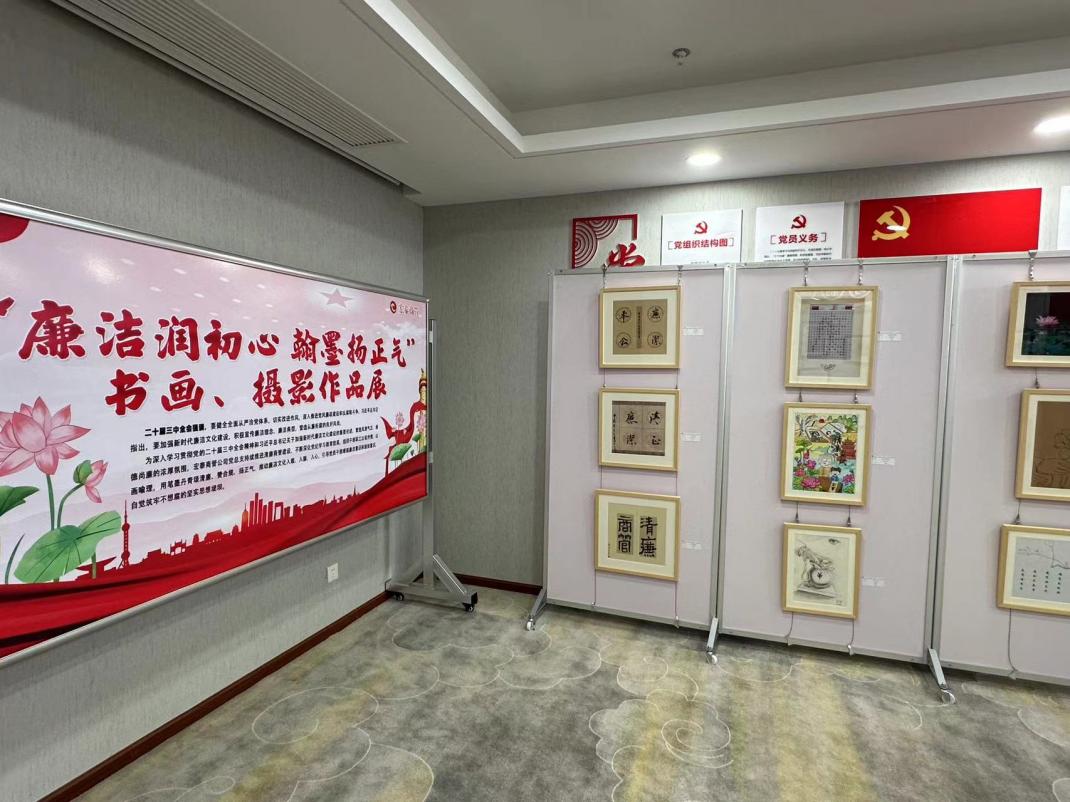 会后,集团党纪学习教育工作专班成员、党委办公室经理杨亚玲与商管公司党总支班子成员一同参观了宏泰商管廉洁书画作品展。