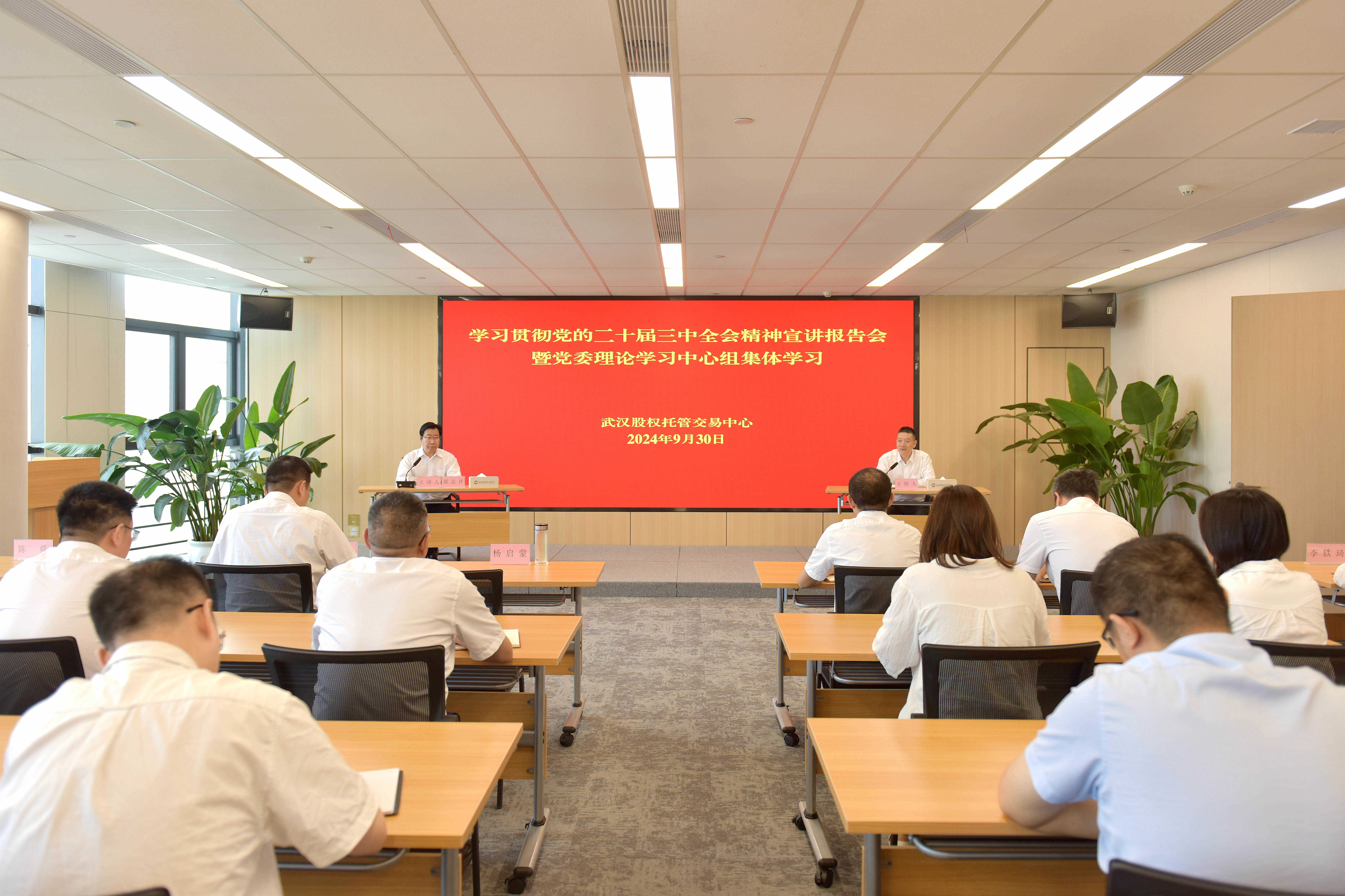 9月30日,武汉股交党委开展党委理论学习中心组第6次集中学习暨学习贯彻党的二十届三中全会精神宣讲会,邀请省委宣讲团成员、省委统战部副部长、省社会主义学院党委书记邵志祥作专题辅导。中心党委副书记、总经理杨启蒙主持会议,党委班子成员、各部门负责人和全体党员参加会议。