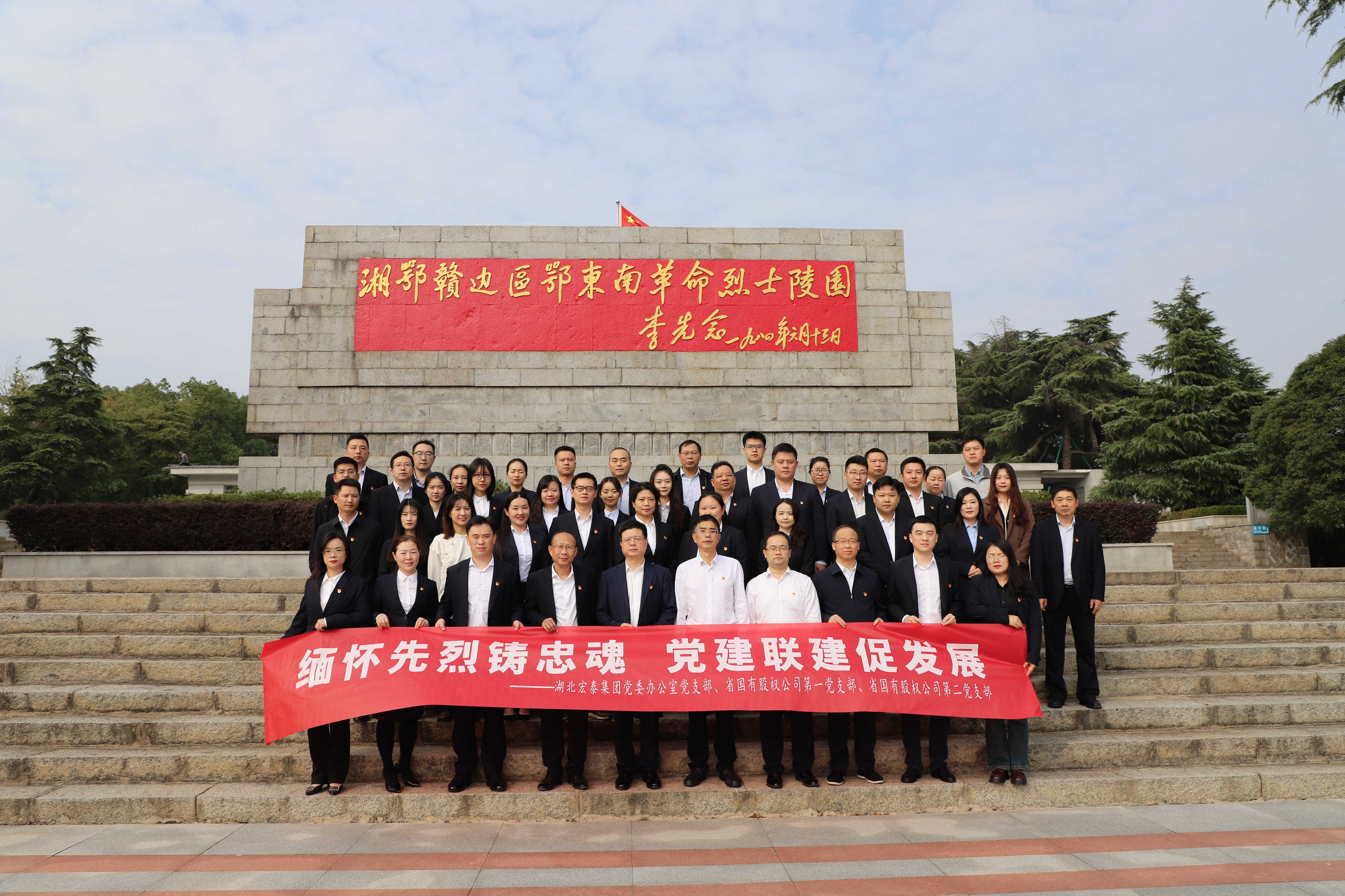 11月1日,开元官方版网站登录入口党委办公室党支部、湖北省国有股权营运管理有限公司第一、二党支部全体党员及统战群团代表齐聚在阳新县湘鄂赣边区鄂东南革命烈士陵园,联合开展“缅怀先烈铸忠魂,党建联建促发展”主题党日活动。