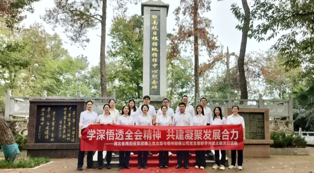 11月15日,省再担保集团第三党支部与鄂州担保公司党支部联合开展了以“学深悟透全会精神 共建凝聚发展合力”为主题的支部联合主题党日活动,共同追寻红色足迹,传承革命精神。省再担保集团党委委员、纪委书记程阳以普通党员身份参加活动。