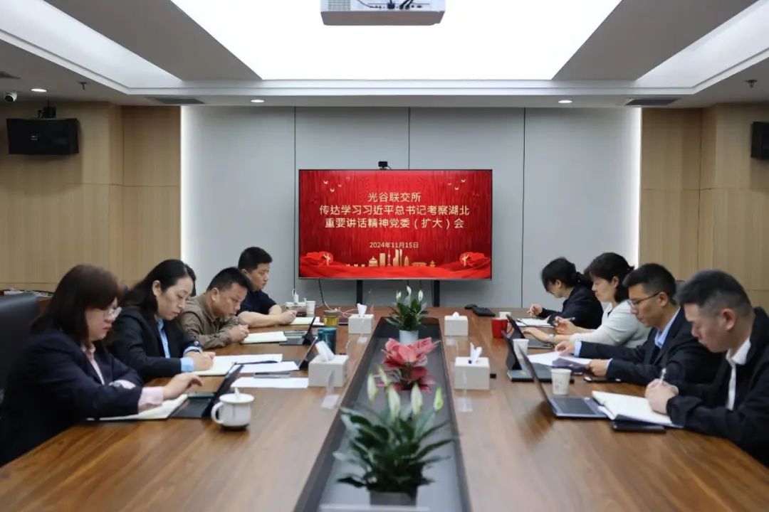 近日,党委书记、董事长杨静主持召开光谷联交所党委(扩大)会议,专题传达学习习近平总书记考察湖北重要讲话精神、省委、省政府、省国资委党委会议精神以及集团党委(扩大)会议精神,并结合实际研究贯彻落实工作。