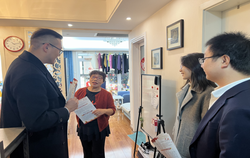 资管公司法务工作人员和社区干部组成法律工作小分队,走家入户发放宪法知识传单、进行金融防诈宣传、现场解答问题。
