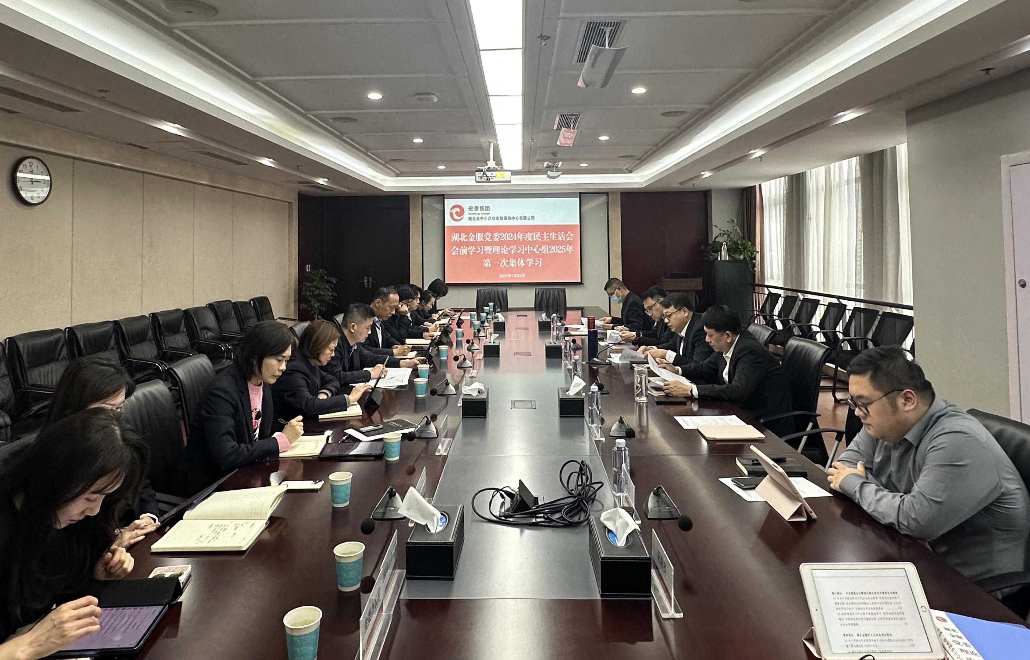 1月23日,湖北金服党委召开2024年度民主生活会会前学习暨党委理论学习中心组2025年第一次集体学习会。公司党委书记、董事长黄骏飞主持会议。