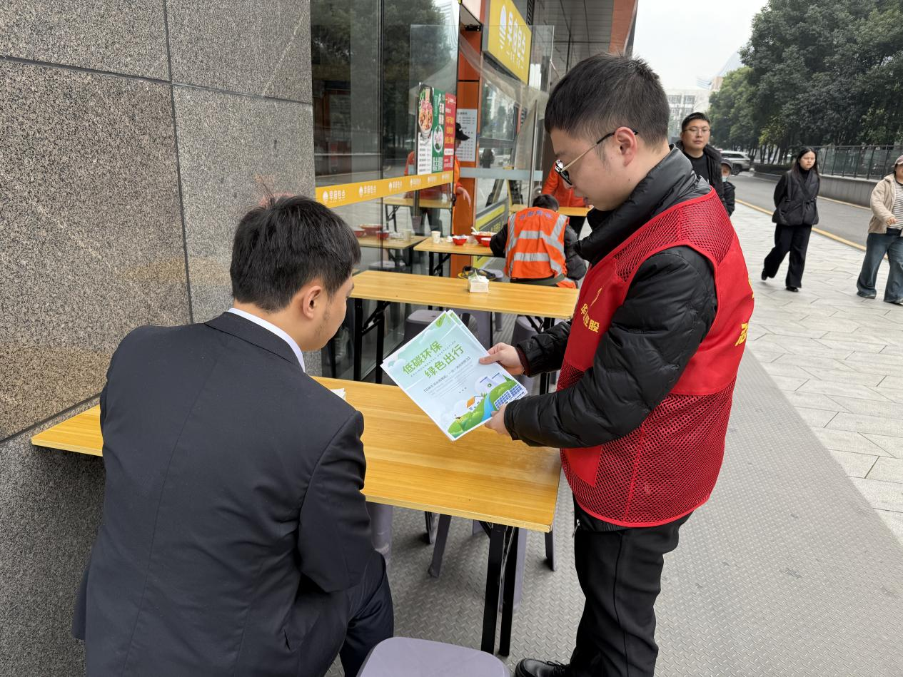 接下来,志愿者们迅速集合,前往社区完成清扫垃圾任务,给社区居民们发放创意环保宣传标语,普及绿色环保低碳知识。
