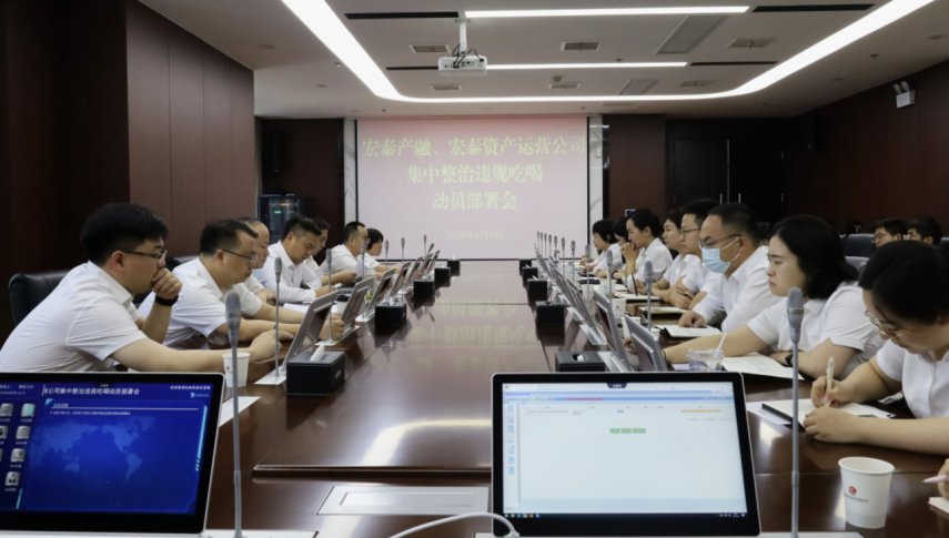 6月9日上午,宏泰产融公司、宏泰资产运营公司联合召开了集中整治违规吃喝动员部署会。公司党委书记、董事长宓安雷同志主持会议并讲话。