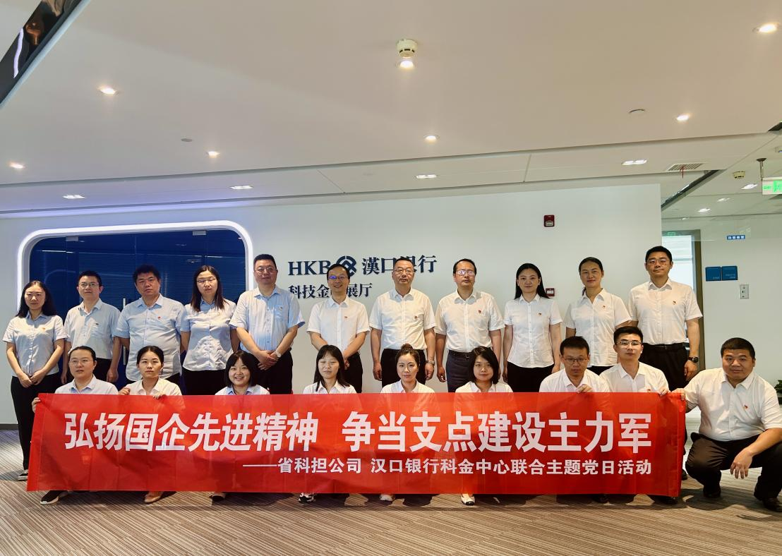 为进一步深化银担合作,推动党建与业务深度融合,按照年度党建联建计划安排,7月24日,省科担公司党支部与汉口银行科技金融服务中心(以下简称“科金中心”)党委联合开展“弘扬国企先进精神 争当支点建设主力军”主题党日。本次主题党日创新采用“观摩+研学+研讨”立体化模式,通过党建共建搭建业务协同平台,共同探索科技金融服务实体经济新路径,为湖北支点建设注入金融动能。