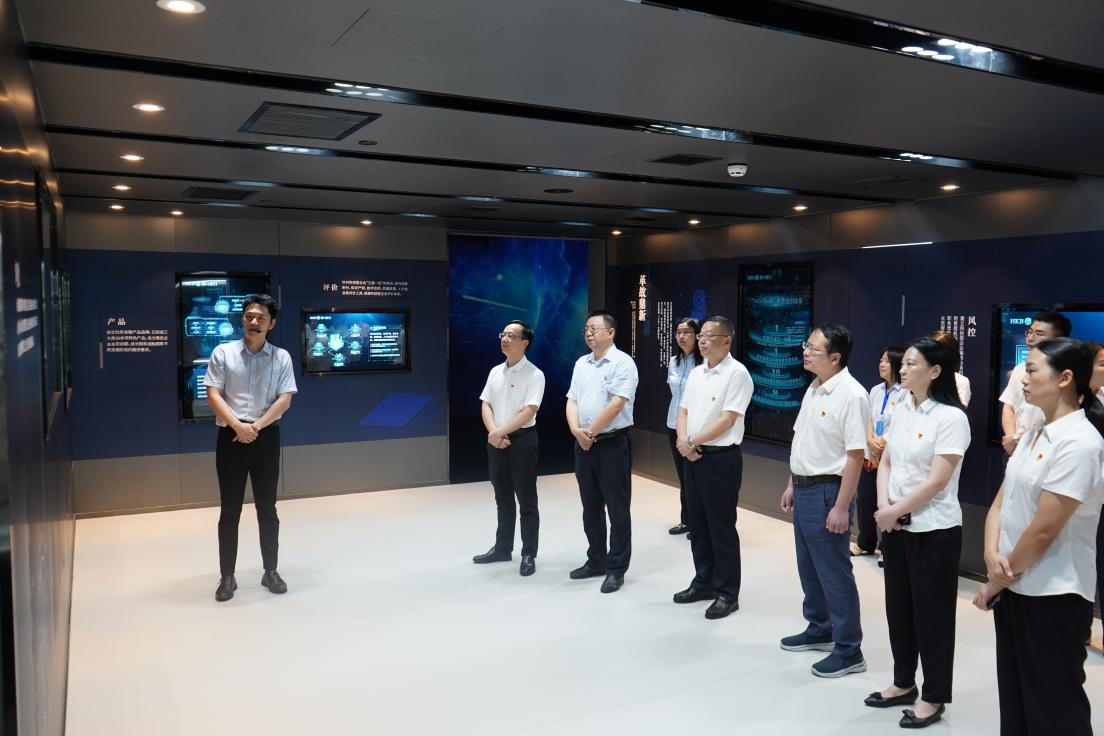 首站聚焦科技金融创新成果展示。在科金中心科技金融展厅,双方党员通过动态演示系统、大数据看板及光影交互装置等数字化展示,沉浸式体验汉口银行“科技金融生态圈”建设历程。省科担公司党员丁丽蓉表示:“数字化工具让金融服务更具穿透力,这种‘数据跑路’替代‘企业跑腿’的模式值得担保机构深度借鉴。”