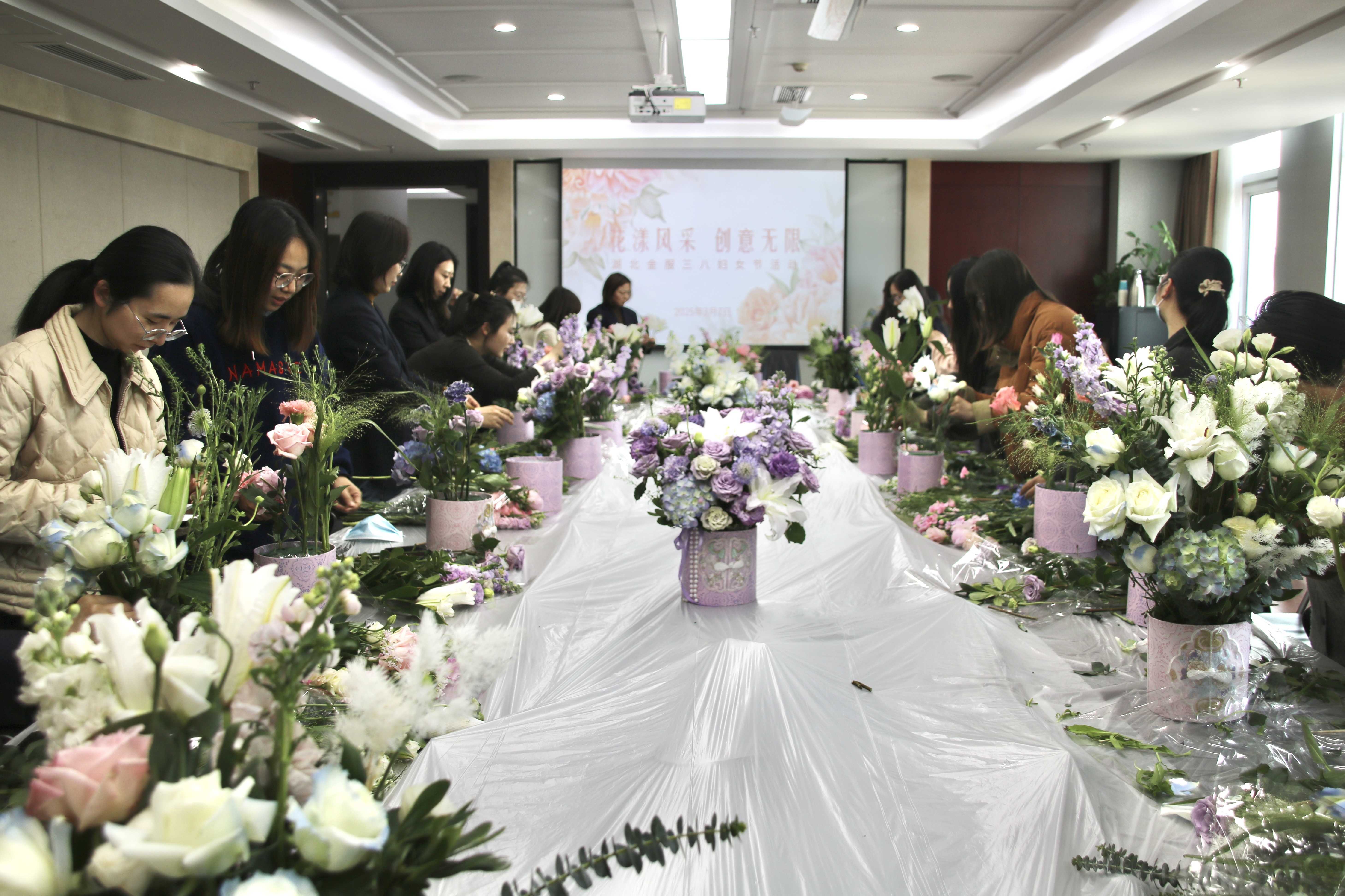 3月7日,湖北金服工会组织开展“花漾风采创意无限”花艺活动。39名女职工欢聚一堂,共度美好节日。