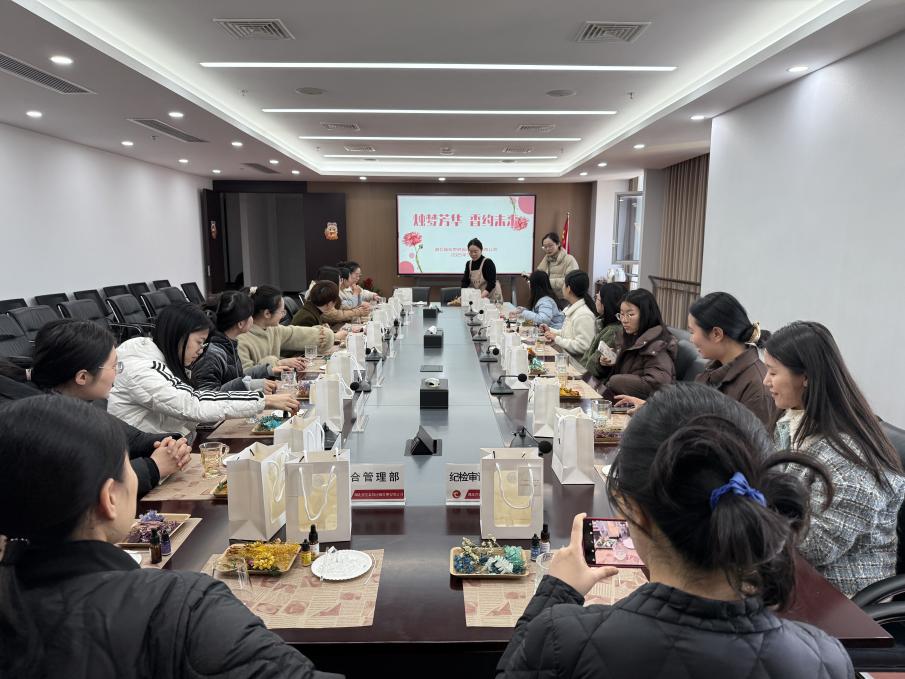随后,在专业老师的指导下,大家开始了香薰蜡烛DIY体验。从选择蜡材、调配香氛到装饰点缀,女职工们尽情发挥创意,用心制作精妙绝伦的香薰蜡烛。活动现场欢声笑语,芬芳四溢,大家沉浸在创作乐趣中,感受着节日的喜悦和温暖。