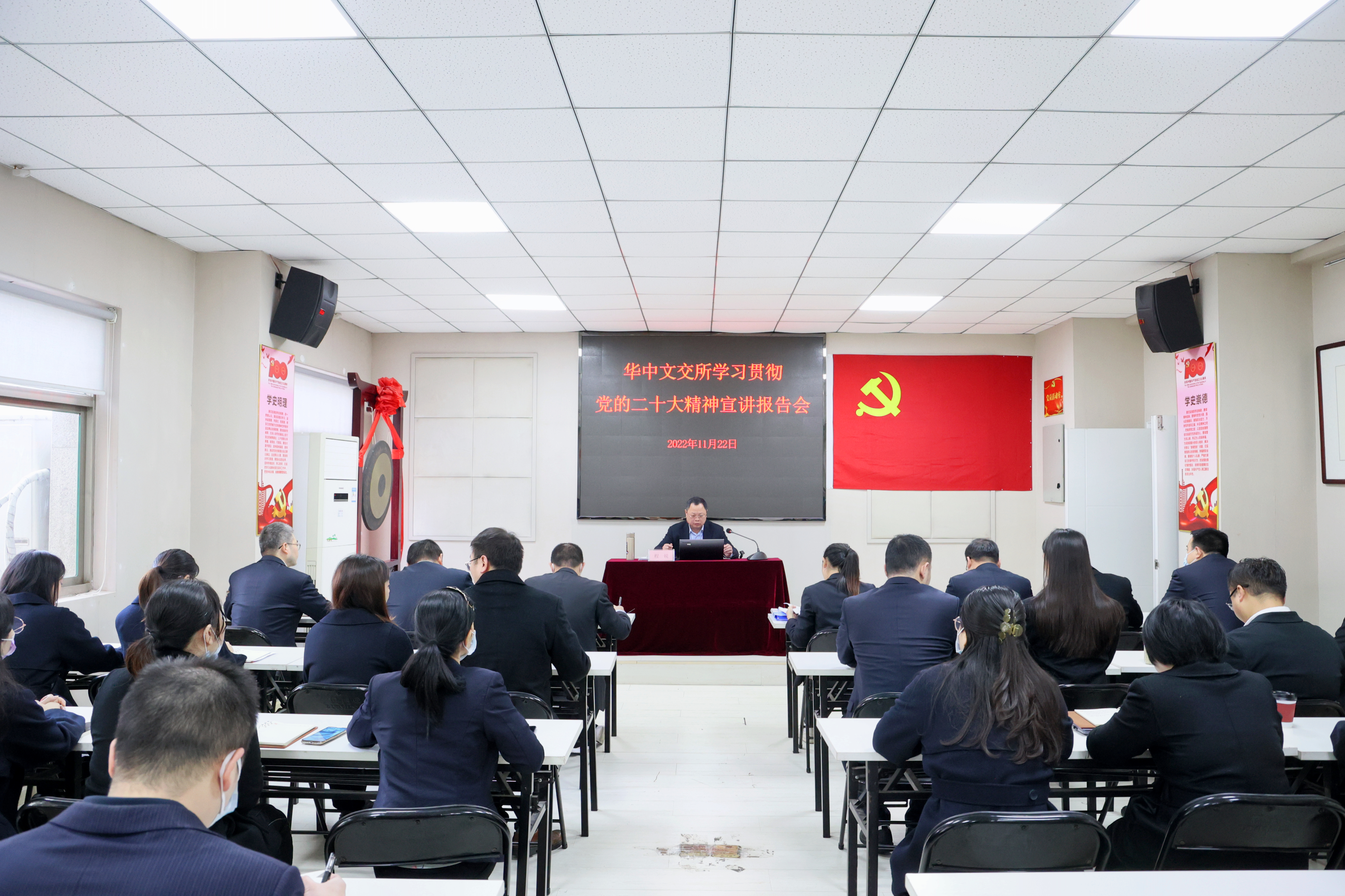 11月22日,华中文交所召开专题宣讲报告会,深入学习贯彻党的二十大精神,党委书记、董事长程锐作宣讲报告,全体党员干部职工参加学习。