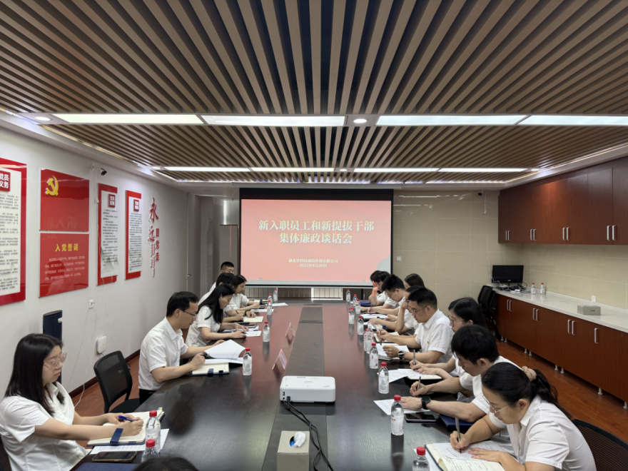 8月20日上午,省科担公司组织召开新入职员工和新提拔干部集体廉政谈话座谈会。公司党支部书记、董事长董勇作总结讲话并提出具体要求,公司党支部委员、纪检委员彭锦主持谈话会,并对参会人员进行集体廉政谈话。