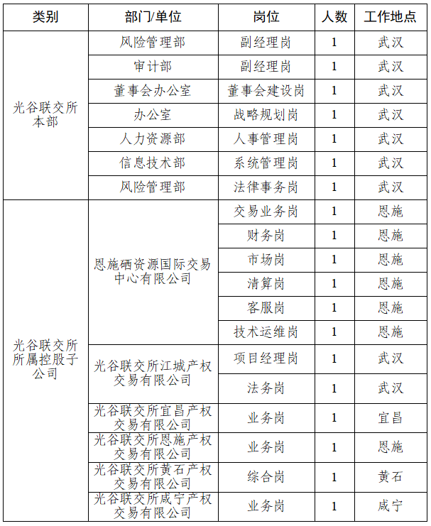 详见附件1:《光谷联交所2023年公开招聘岗位清单》