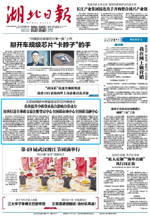王忠林指出,党的二十届三中全会对健全绿色低碳发展机制,积极稳妥推进碳达峰碳中和作出战略部署。当前,国家正全力推动扩大全国碳市场行业覆盖范围,国内碳市场建设面临百舸争流、不进则退的激烈竞争格局。中碳登作为全国碳市场注册登记结算中心,是拉升湖北发展高度的重大平台,加快做大做强势在必行、时不我待。要强化机遇意识,以强烈责任感紧迫感推进中碳登建设、全力提升实力活力。