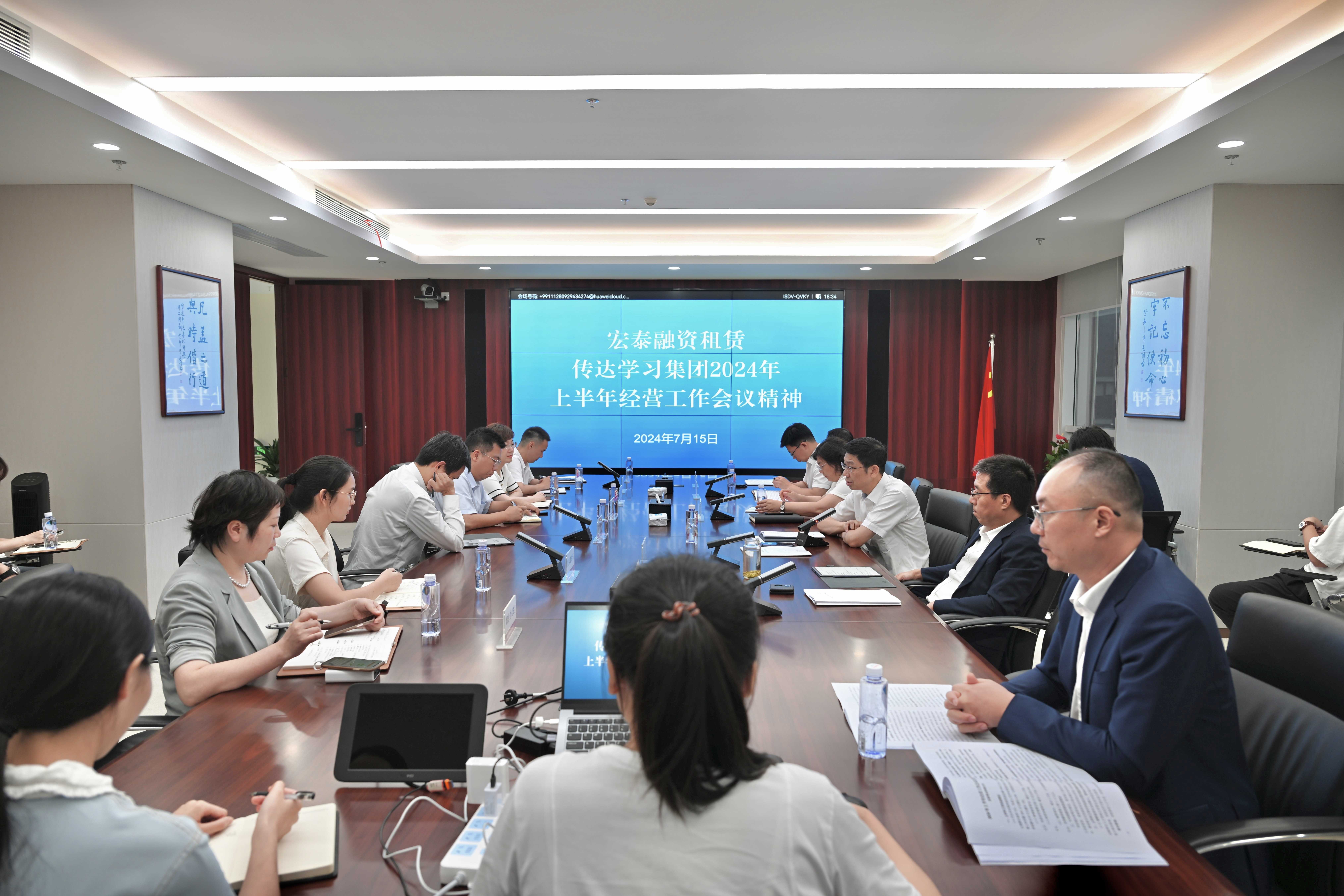7月15日,宏泰融资租赁第一时间召开专题会议,传达学习集团2024年上半年经营工作会议精神并研究部署公司下半年经营工作。公司班子成员及全体干部职工参加会议。