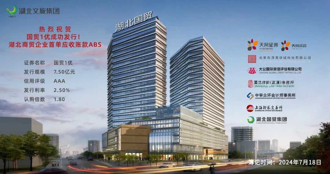 近日,由天风证券子公司天风资管作为计划管理人的“天风-湖北国贸应收账款第1期资产支持专项计划”成功发行,本次优先级资产支持证券发行规模7.5亿元,不设次级资产支持证券,期限2年,优先级票面利率为2.50%。本次资产支持证券为湖北商贸企业首单应收账款ABS。