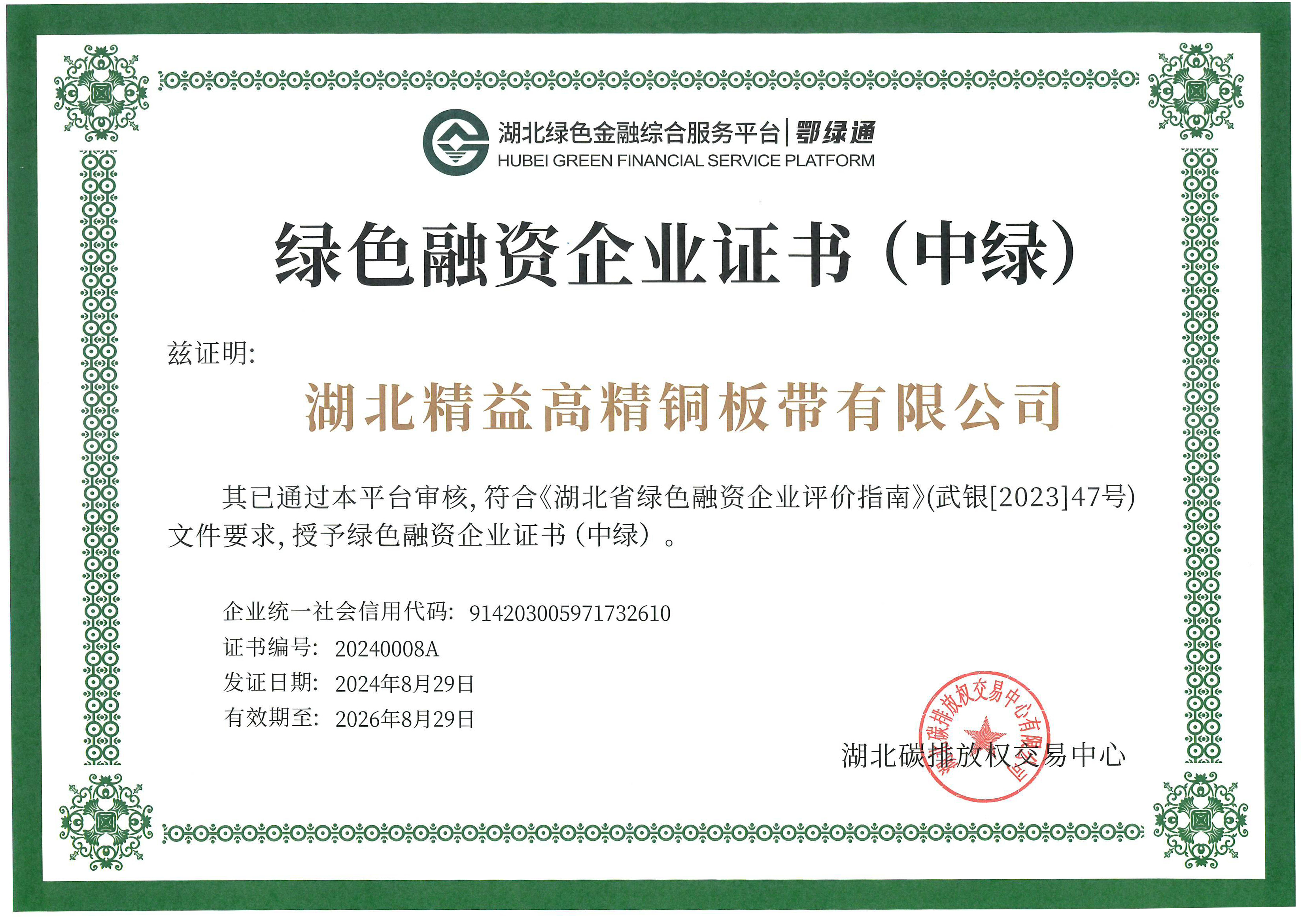 湖北精益高精铜板带有限公司于今年8月底成功纳入鄂绿通平台绿色融资企业库,通过参与绿色企业评价,在企业生产工艺优化、环保材料选用合理性等核心领域获得了技术专家的深入剖析与指导。专家精准识别企业存在的问题,并针对性地提出了生产流程绿色化转型意见。企业入库后,鄂绿通平台协助其申请“十堰市绿色发展贷”财政贴息政策,为绿色企业融资提供低成本资金,有效减轻了企业的融资负担。