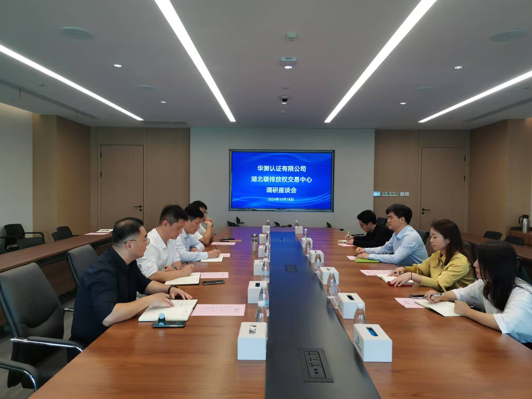 10月18日,华测认证有限公司副总经理林武一行调研湖北碳交中心,湖北碳交中心党委副书记、总经理何昌福接待了华测认证有限公司一行,陪同参观了湖北碳交中心展示大厅并进行了座谈交流。
