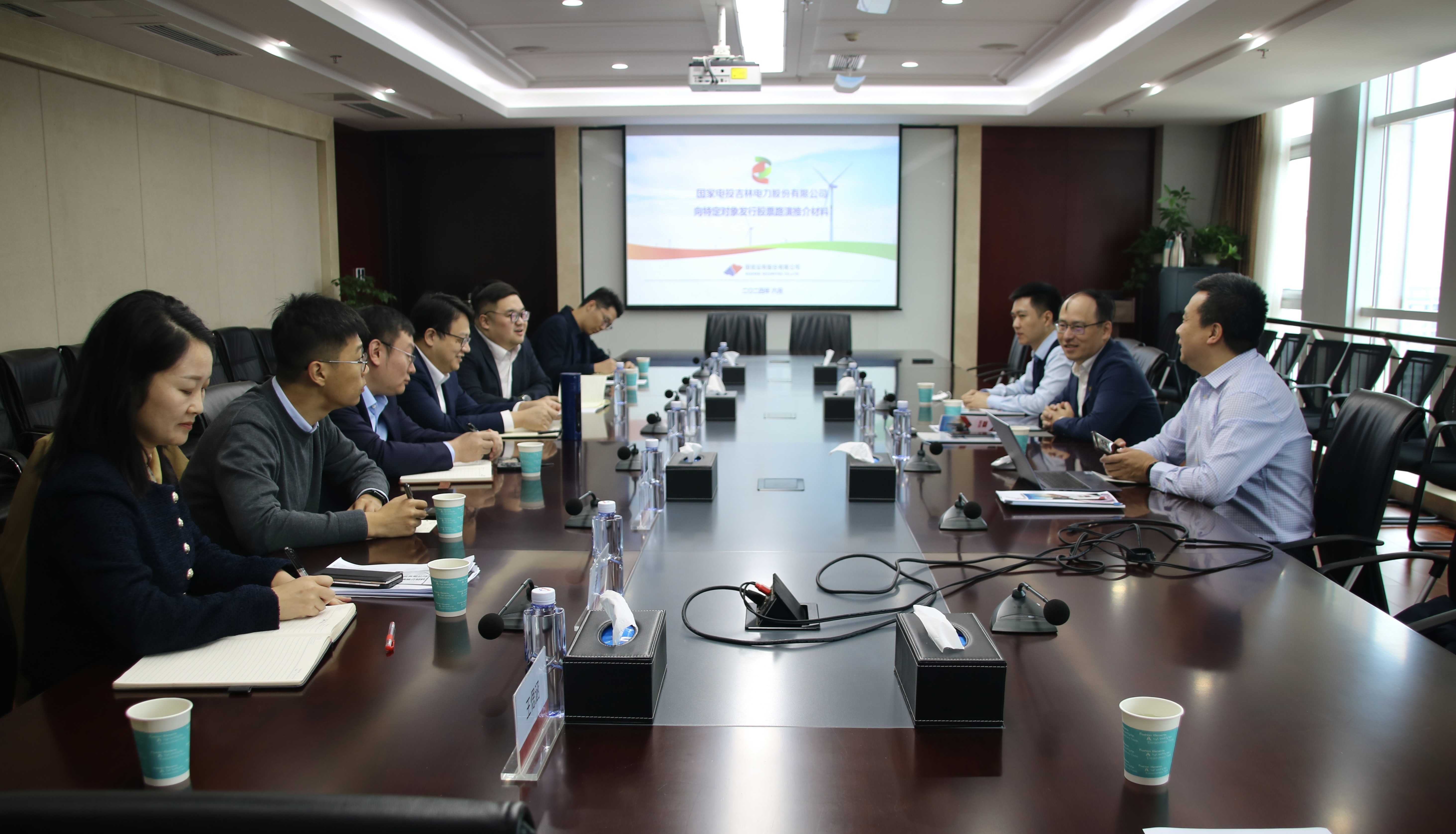 10月22日上午,国家电投吉电股份党委委员、总会计师谢晶一行到访湖北金服,公司党委书记、董事长黄骏飞接待并就聚焦绿色低碳产业深化双方合作进行交流座谈,湖北文旅资管、湖北铁投基金、湖北资管、湖北高投产控等省属平台一同参加座谈。