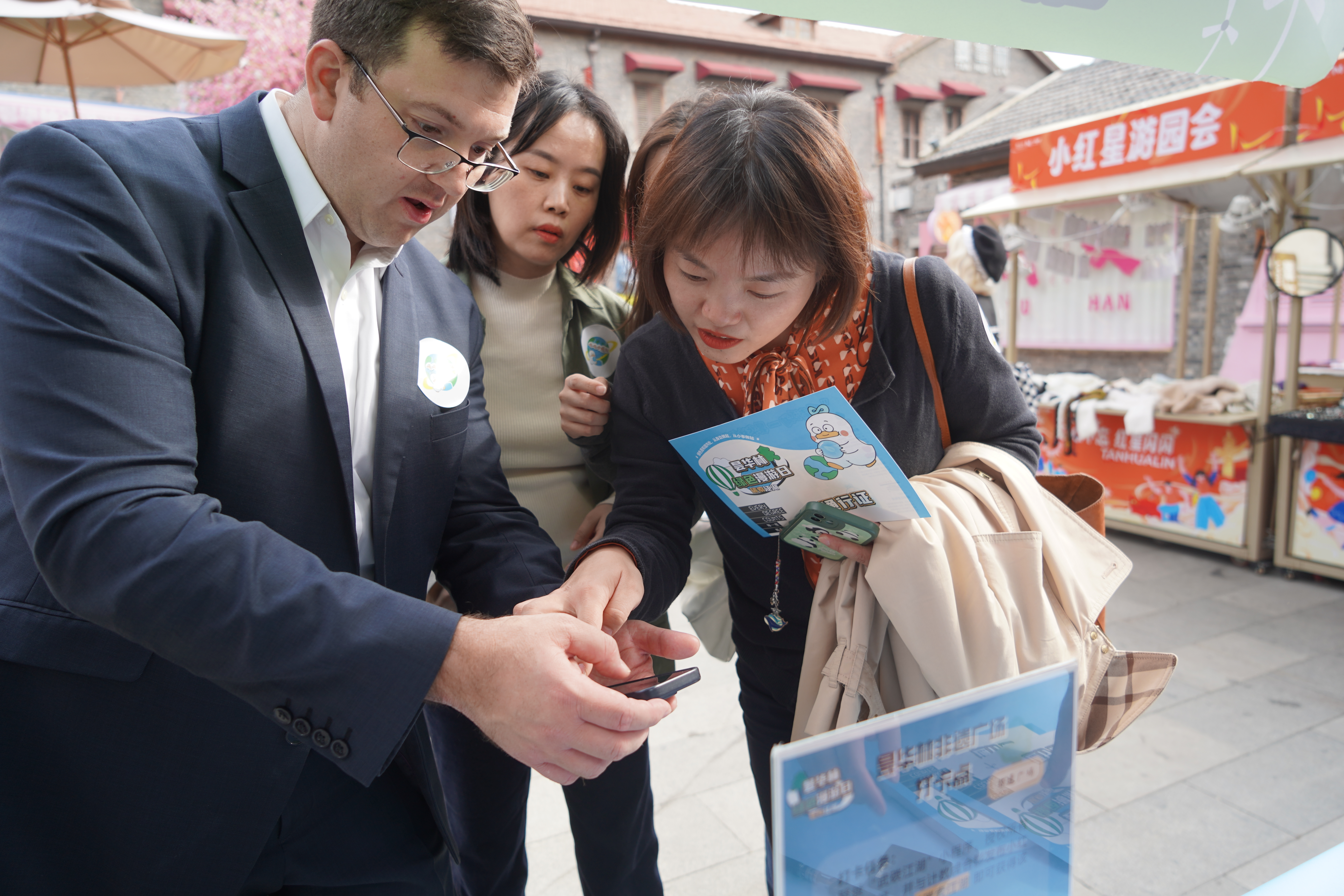 打卡PK赛环节,三组参加PK赛的成员们根据地图指引,依次完成低碳问答、低碳香囊制作等各个打卡点的互动任务,最终角逐出低碳先锋奖和低碳参与奖。现场的市民游客也深受活动吸引,纷纷参与到了打卡活动中,通过有趣的低碳互动,进一步加深了对双碳知识和低碳生活方式的了解。