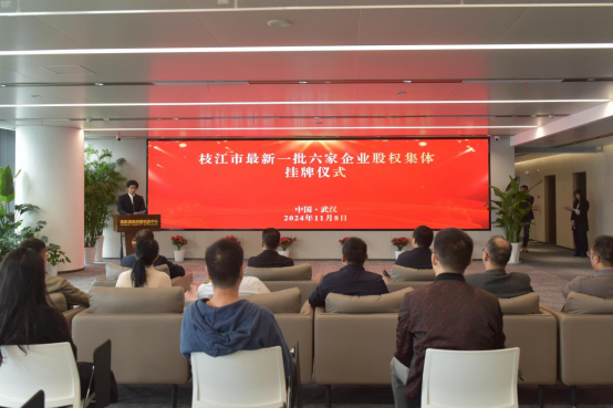 11月8日下午,来自枝江市的6家企业在武汉股权托管交易中心集体鸣锣开市。
