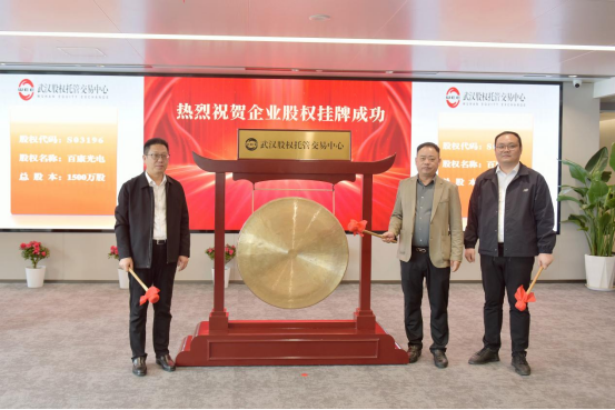 挂牌企业家代表、“百康光电”公司总经理刘容波在致辞中表示,公司在摄像头模组完成光学成像,实现拍照摄影、信息捕捉的技术处于国内领先水平,拥有各类专利34个,同时,公司将摄像头模组的应用拓展到虚拟现实、智能汽车、无人机等前沿领域。希望通过挂牌借助武汉股权托管交易中心这个平台,在资金、技术和管理上,得到更多的帮助和支持。不仅实现进一步展示企业形象,拓宽融资渠道,还能为企业的长期健康发展,奠定坚实基础。