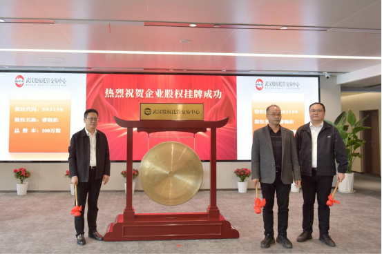 董广华、胡晓清和企业代表易爱民共同为睿程佑公司鸣锣开市