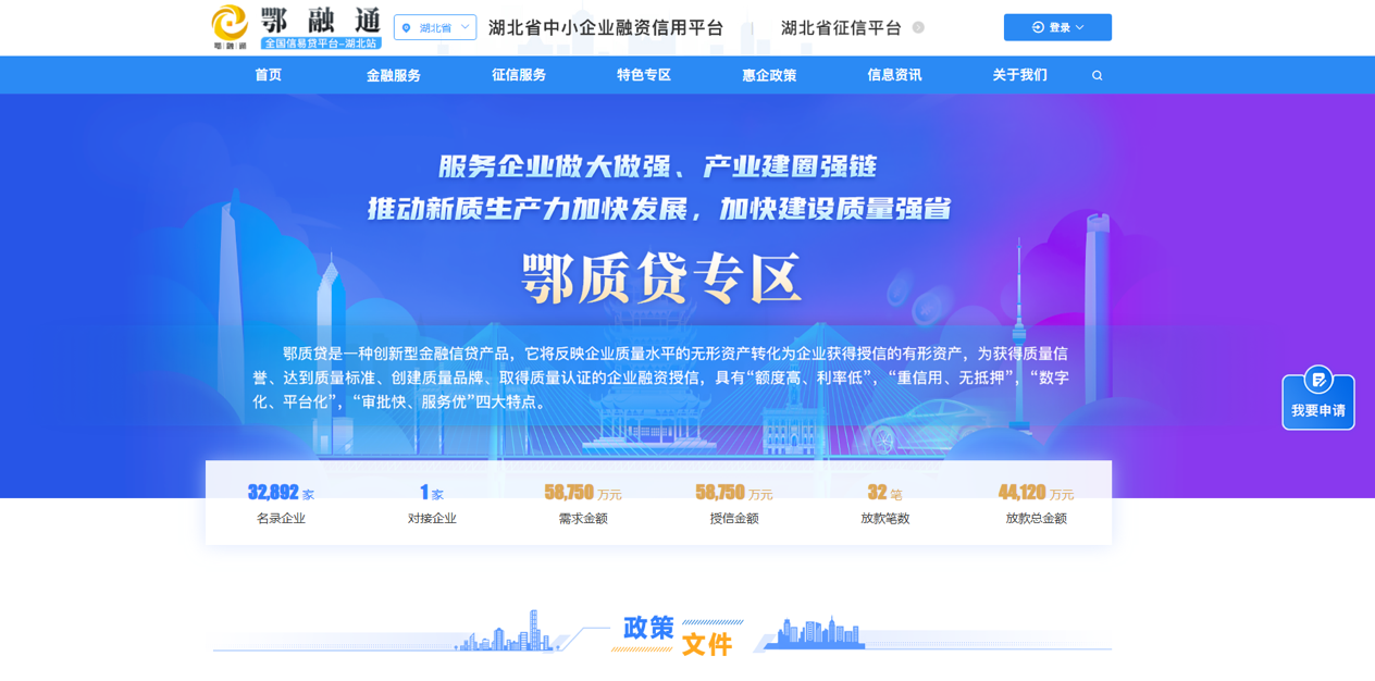 今年8月,湖北征信受省市场监督管理局和省地方金融管理局委托,依托“鄂融通”平台建设“鄂质贷”企业融资对接系统。自9月3日“鄂质贷”发布以来,平台累计归集质量白名单企业33957家,为质量企业授信5.875亿元,实现放款4.412亿元。