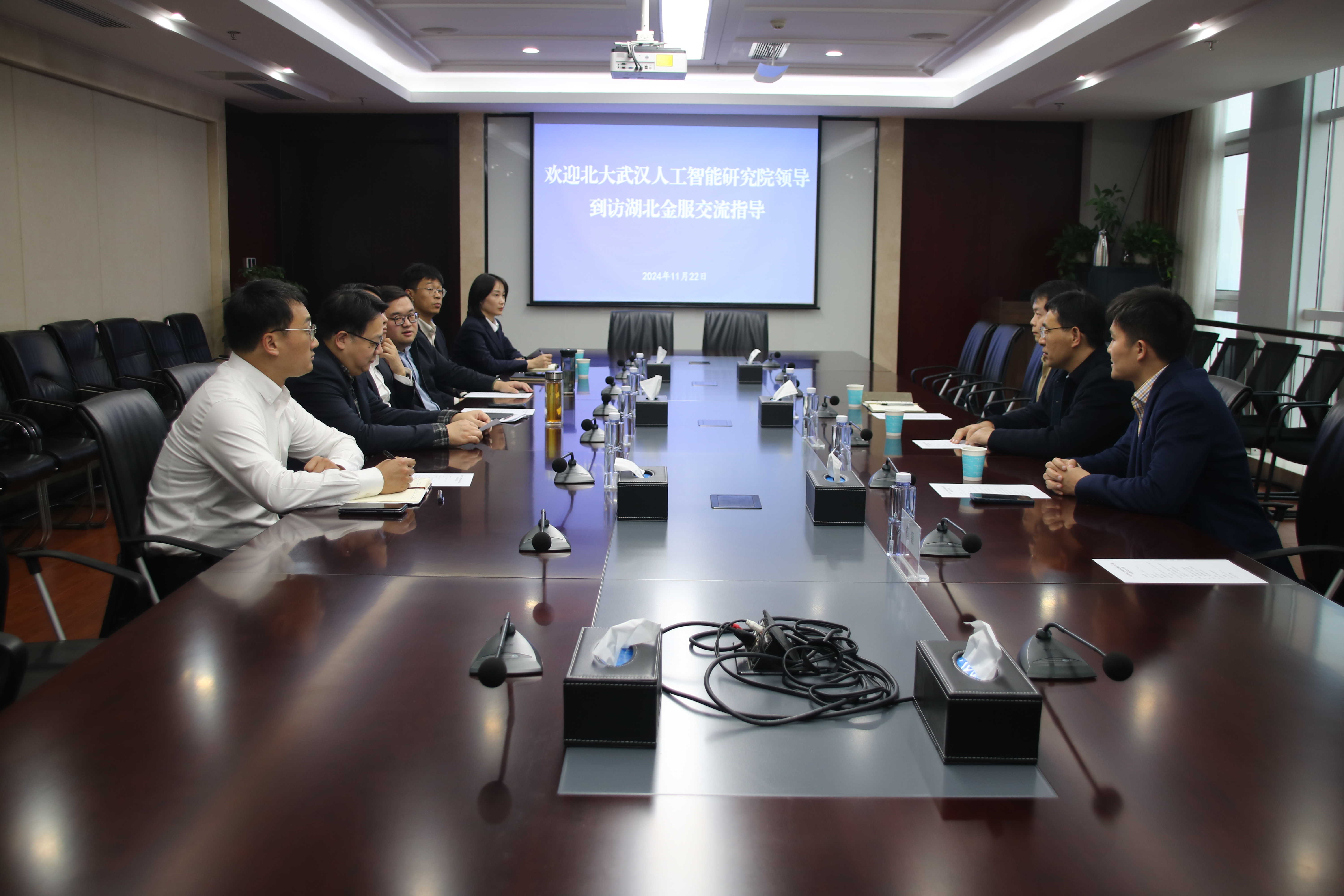 11月22日下午,湖北人工智能学院院长、北京大学武汉人工智能研究院副院长马修军一行到访湖北金服,双方就人工智能产业与科技金融深度合作开展座谈交流,湖北金服党委书记、董事长黄骏飞接待并主持座谈。