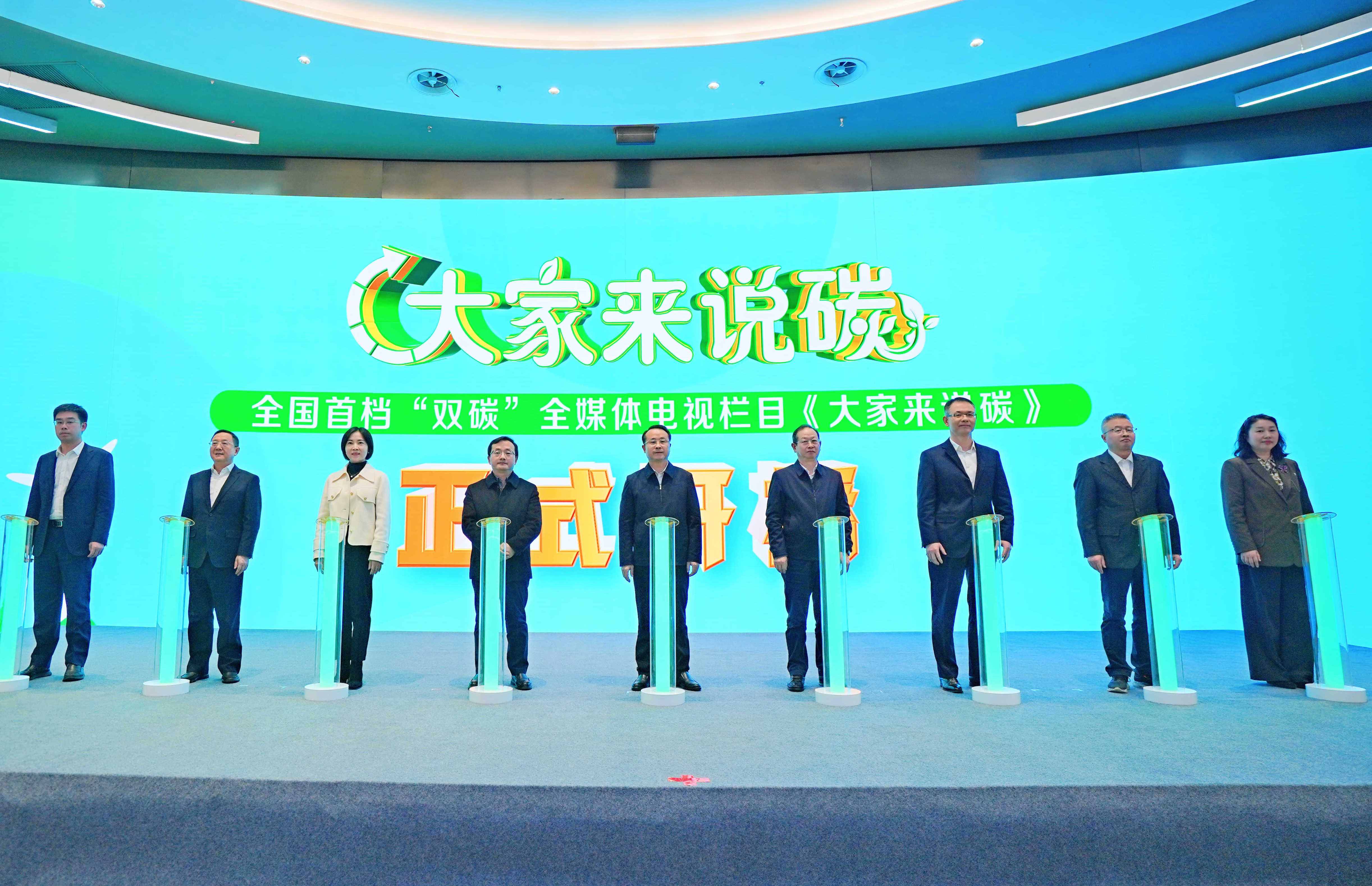 启播!17日下午,全国首档“双碳”全媒体电视专栏《大家来说碳》在中碳登大厦举行启动仪式。画好“同心圆”,讲好“碳故事”,推动低碳生活新风尚,即日起,该栏目将在湖北广播电视台同步播出。