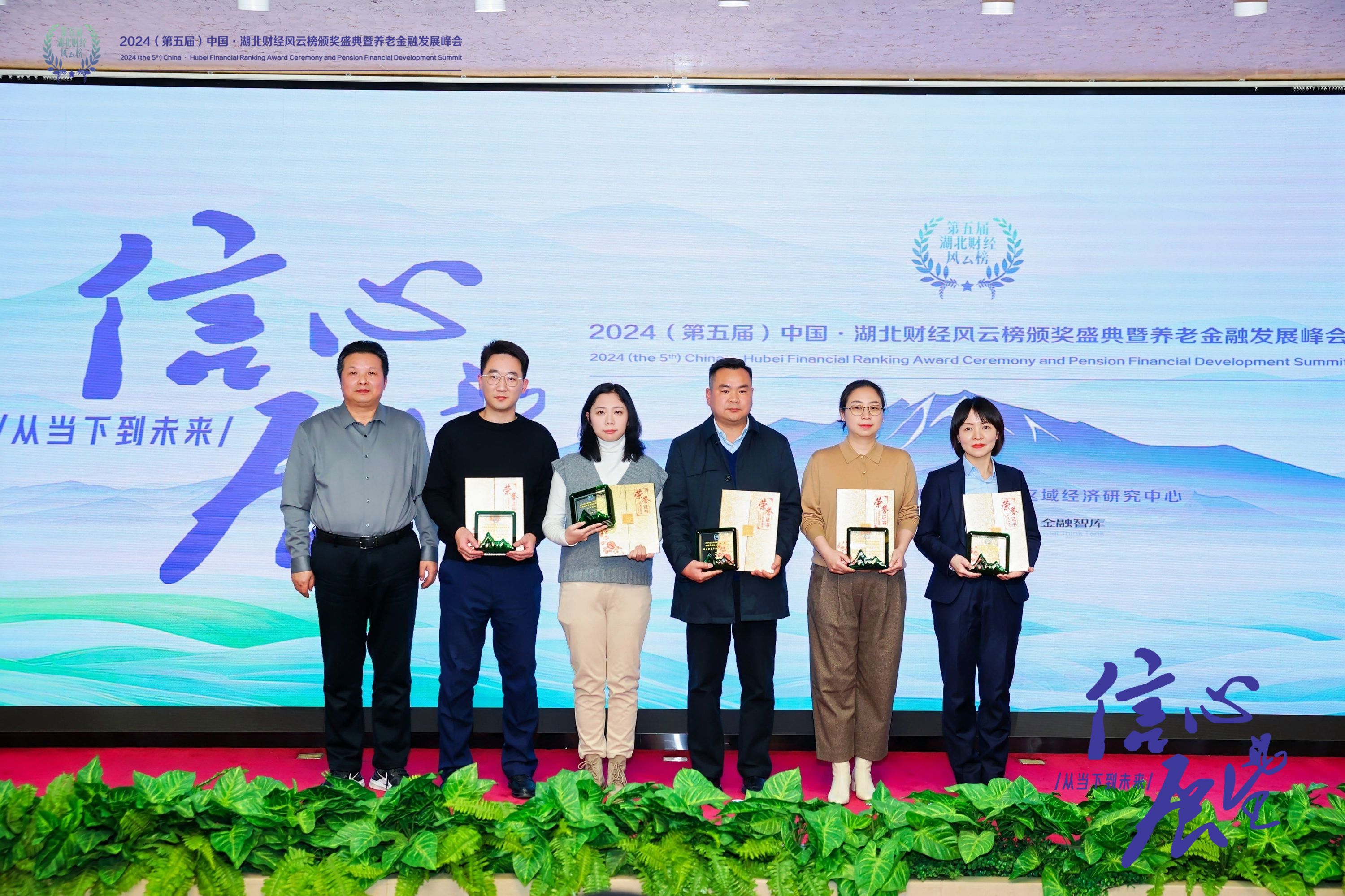 1月9日下午,2024(第五届)中国·湖北财经风云榜颁奖盛典暨养老金融发展峰会在武汉楚天传媒大厦圆满举行,宏泰产融荣获“年度最佳金融产品创新机构”和“年度最具社会责任金融机构”称号。公司党委副书记、总经理宓安雷,党委委员、副总经理李超出席颁奖典礼。