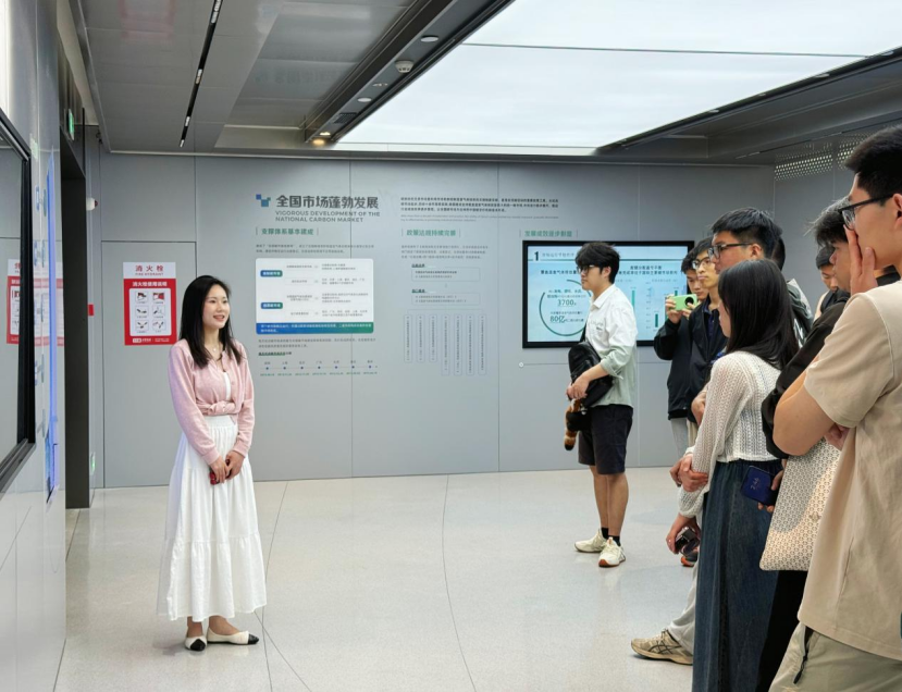 中碳登展厅完整展现了碳市场的演变历程,通过专业的双碳宣讲,学生们深入了解了碳市场的前沿发展及关键政策方向,理解了“双碳目标”的重要战略意义。